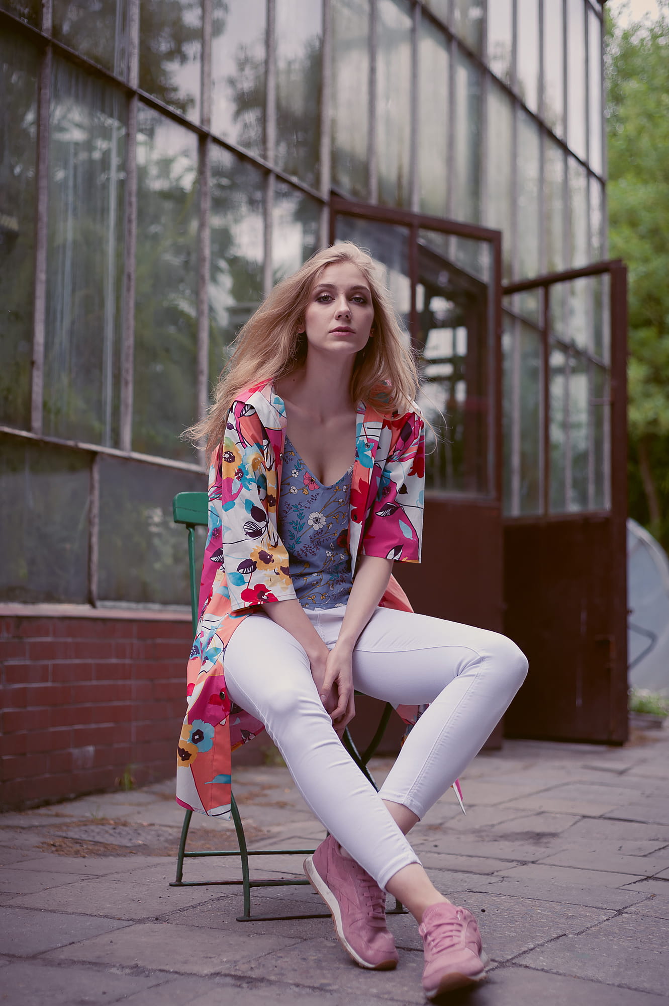 Letni płaszczyk w prostym klasycznym fasonie koszuli. Zapinany na napy metalowe. Klasyczny kołnierzyk. Rękaw 3/4. Asymetryczny dół z dłuższym przodem. Kieszenie w szwach bocznych. Do płaszczyka dołączony jest szeroki pasek, którym wspaniale podkreślisz talię. Uszyty z tkaniny mieszanej z mocnym kwiatowym printem.