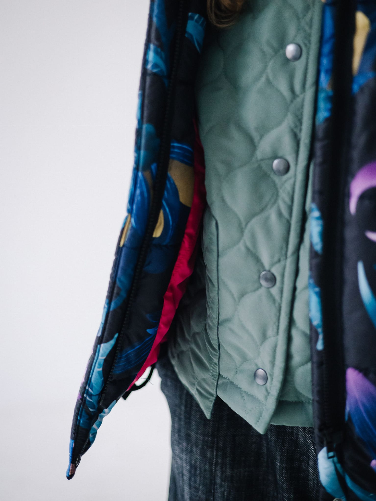 Delikatne ocieplenie zapewnia komfort termiczny, nie obciążając sylwetki zbędną objętością. Subtelne metalowe zatrzaski nadają jej elegancji, a naszywane kieszenie na przodzie dodają praktyczności. To funkcjonalne i stylowe uzupełnienie codziennej garderoby, łączące polski design z wygodą użytkowania.