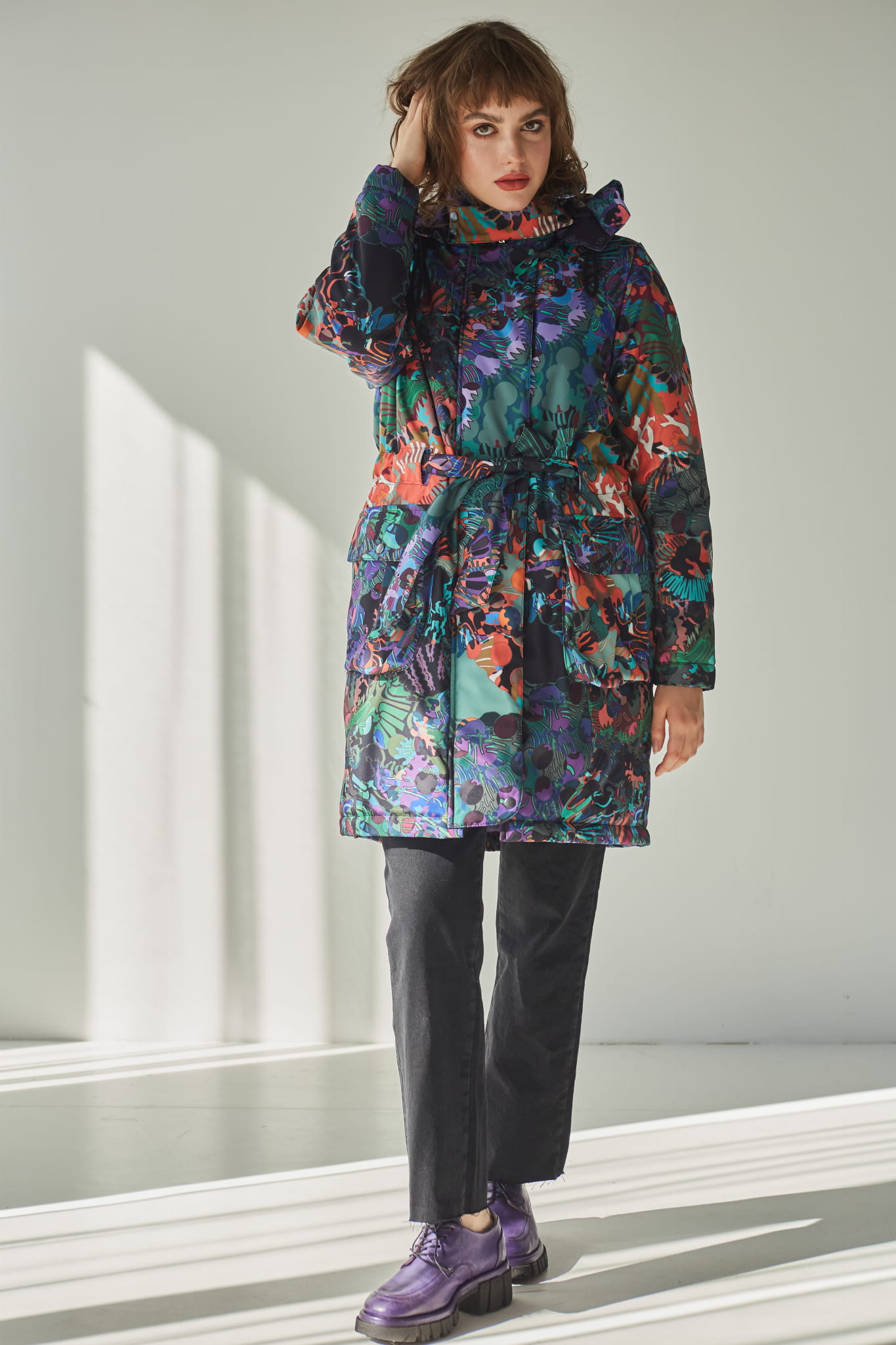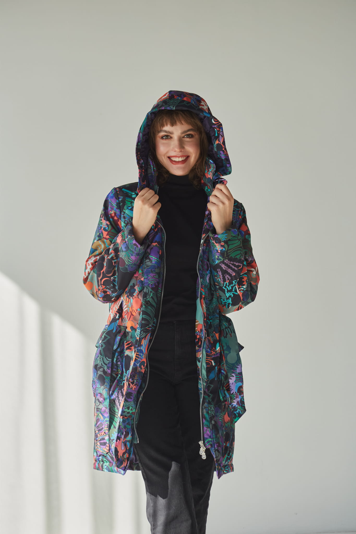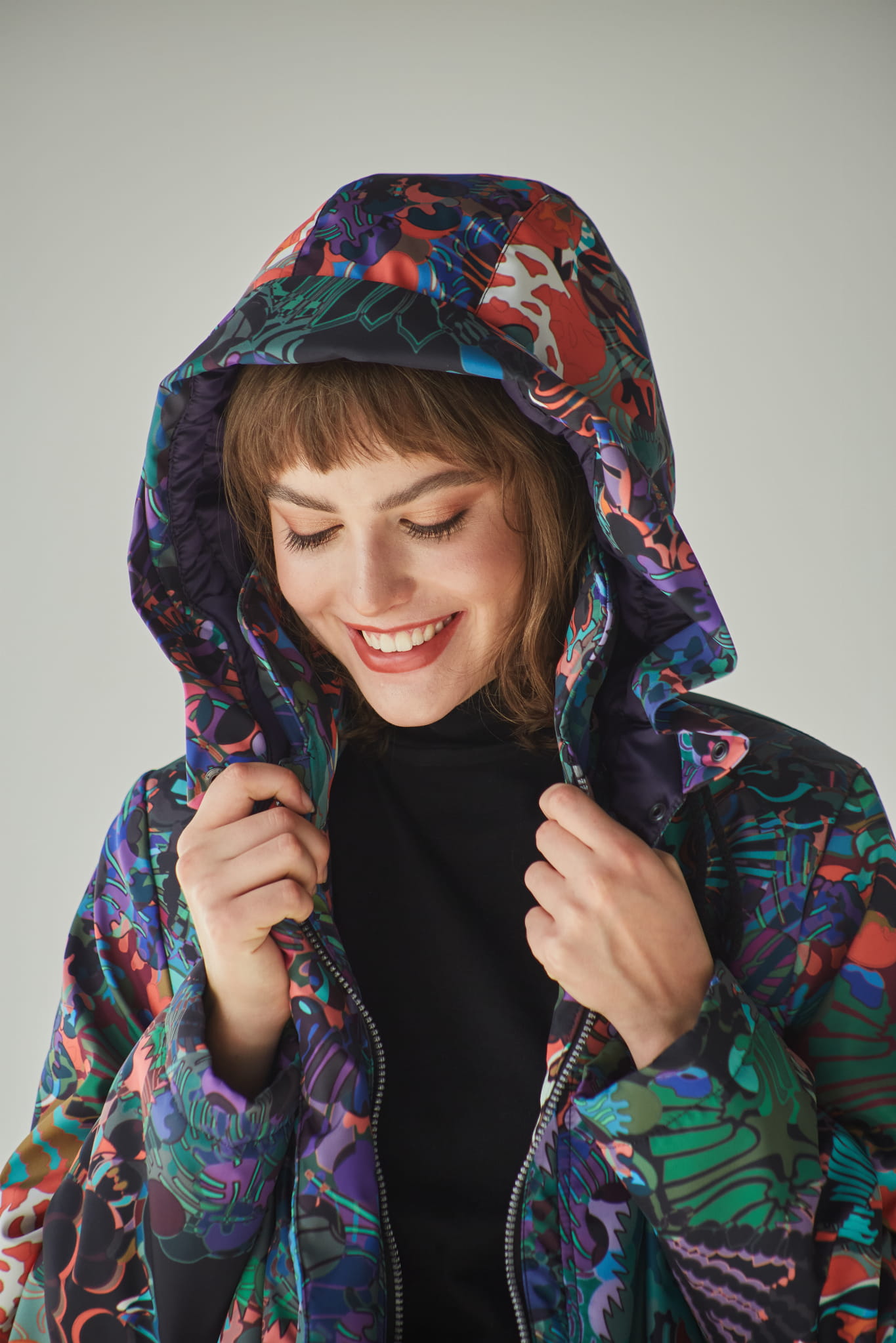 Stylowa kurtka Azurra z autorskim wzorem na chłodniejsze dni. Wykonana z wysokiej jakości tkaniny warstwowej, odpornej na przemakanie. Ocieplana lekką i ciepłą ociepliną Thinsulate™ (OEKO-TEX Standard 100) – hipoalergiczną i komfortową w noszeniu. Posiada kaptur, duże kieszenie oraz praktyczny dwusuwakowy zamek z dodatkową listwą ochronną.