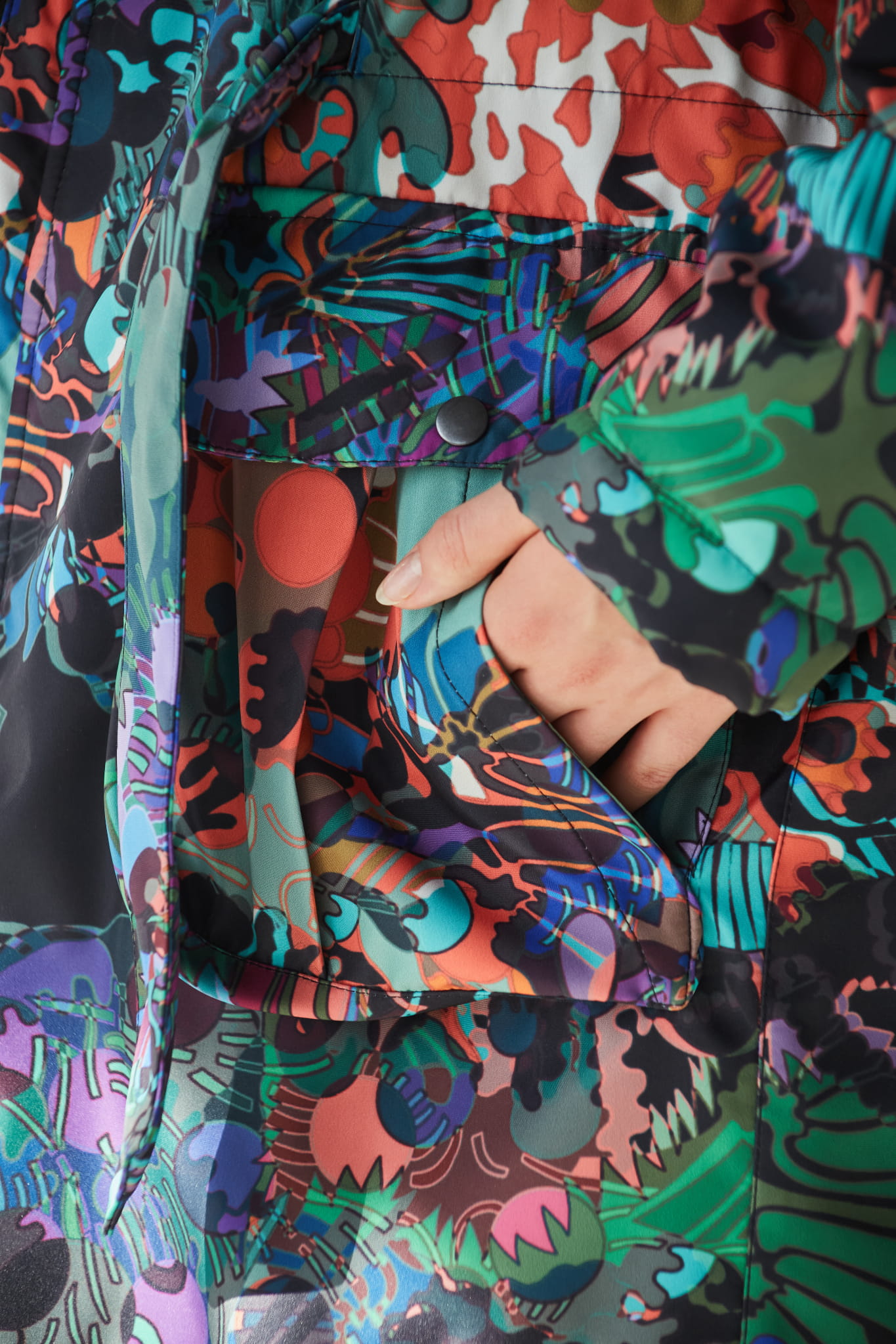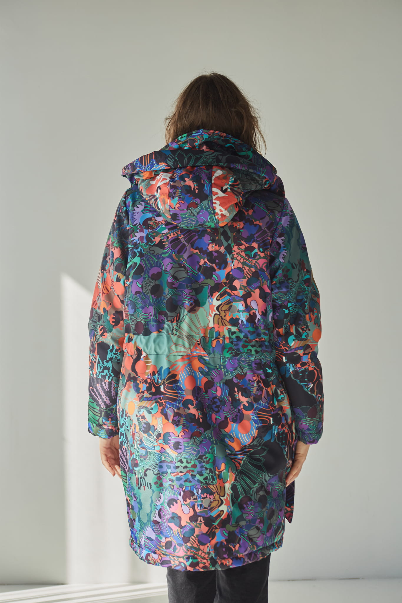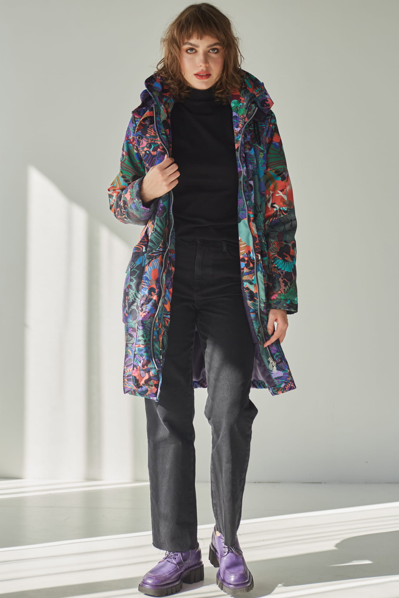 Stylowa kurtka Azurra z autorskim wzorem na chłodniejsze dni. Wykonana z wysokiej jakości tkaniny warstwowej, odpornej na przemakanie. Ocieplana lekką i ciepłą ociepliną Thinsulate™ (OEKO-TEX Standard 100) – hipoalergiczną i komfortową w noszeniu. Posiada kaptur, duże kieszenie oraz praktyczny dwusuwakowy zamek z dodatkową listwą ochronną.