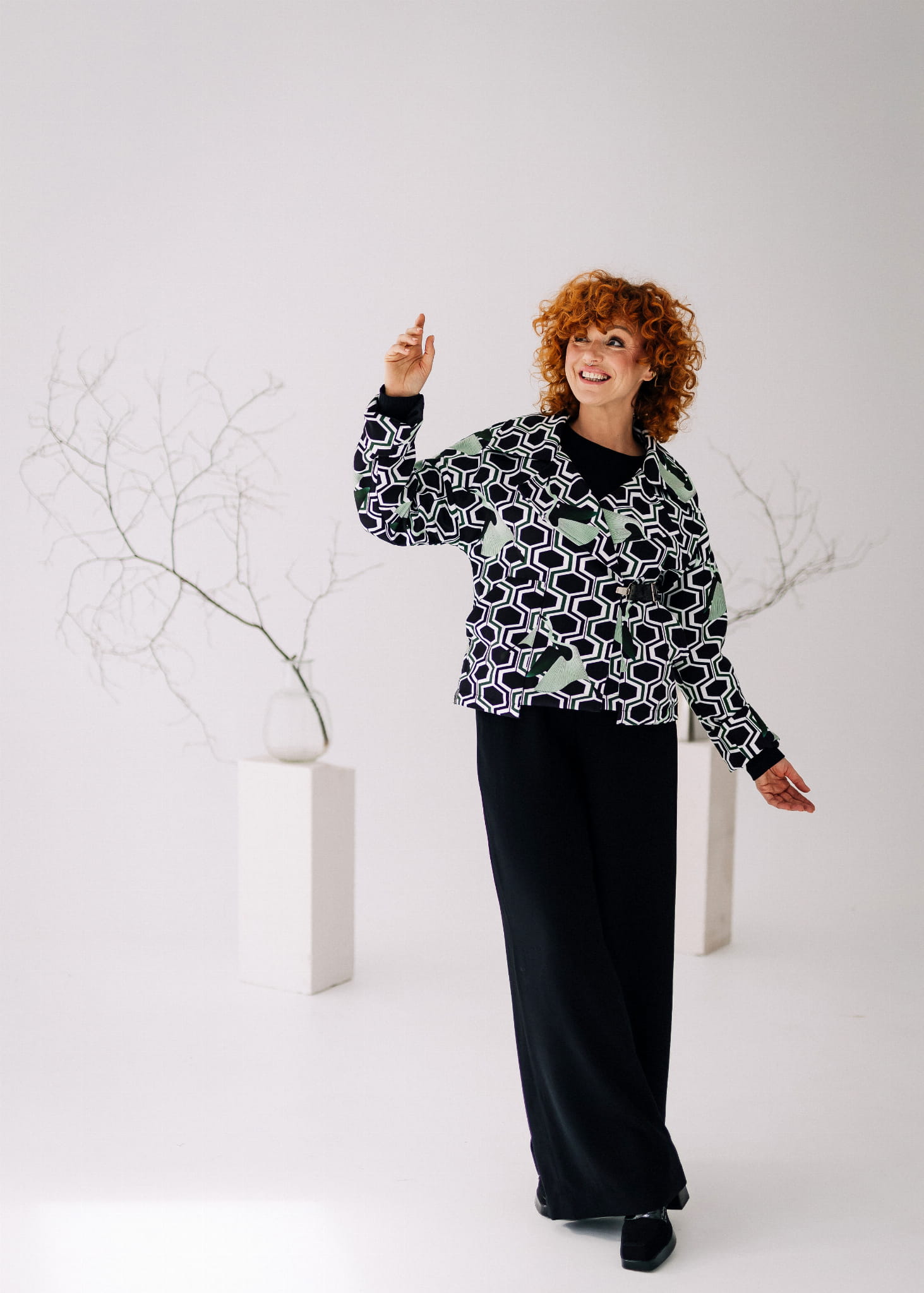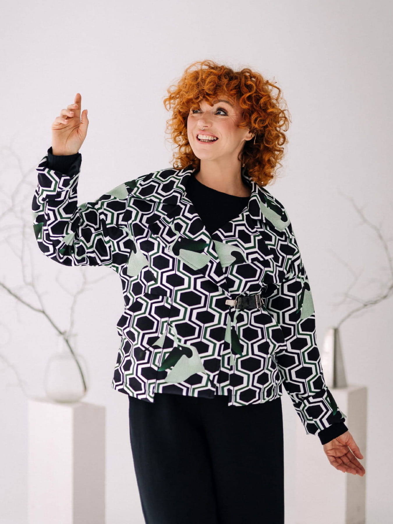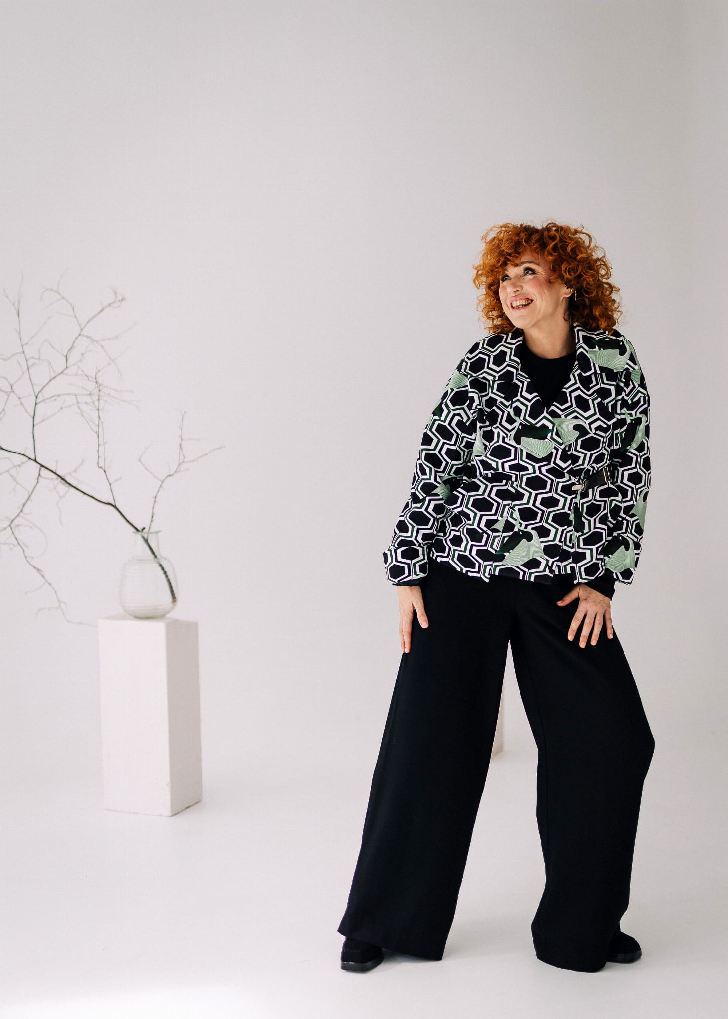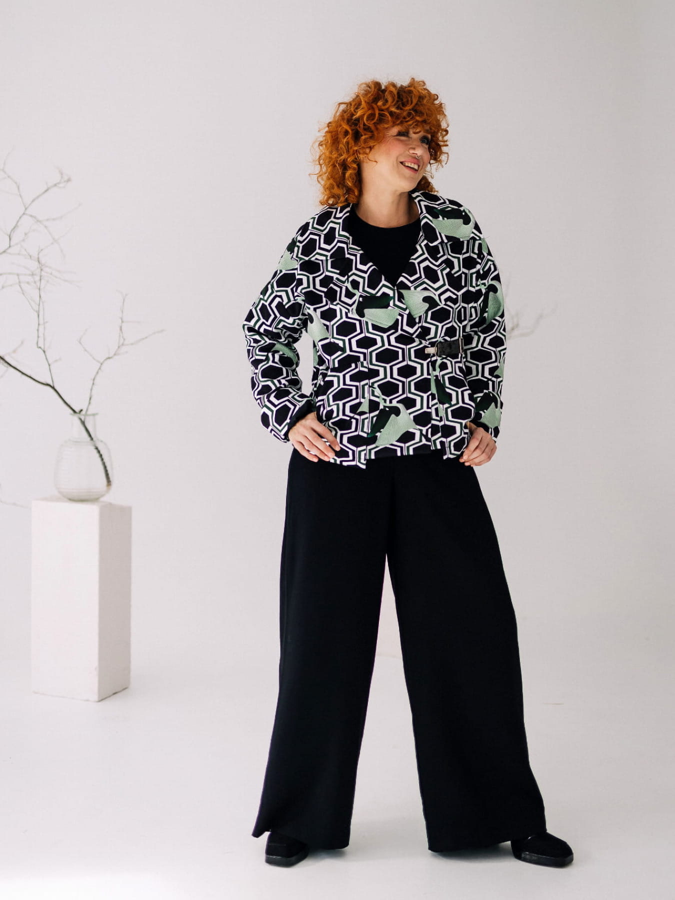 Odkryj kurtkę, która przyciąga spojrzenia – "Vanita Pattern", uszytą z najwyższej jakości flauszu w przyciągającym wzrok różowo-niebieskim kraciastym wzorze. To ubiór dla odważnych, dla których moda jest odzwierciedleniem osobowości. Ozdobne metalowe zatrzaski łączą funkcjonalność z niebanalnym stylem, a szerokie rękawy z wywijanym mankietem dodają nowoczesnego uroku. Podszewka tej wyjątkowej kurtki została wykonana z tkaniny zdobionej autorskimi printami, co gwarantuje, że nie przejdziesz niezauważona. Duży przeskalowany kołnierz nie tylko świetnie wygląda, ale też chroni przed chłodem w stylowy sposób. Oversizowy krój zapewnia komfort i swobodę ruchów, jednocześnie pozwalając na łatwe dopasowanie do różnych sylwetek. Ta kurtka to esencja rzemieślniczej precyzji Pracowni Fio, projektowana i tworzona z myślą o kobietach, które cenią sobie unikatowe, wysokojakościowe ubrania. "Vanita Pattern" to więcej niż odzież – to sposób na wyrażenie siebie. Zachęcamy do włączenia jej do swojej garderoby jako kluczowego elementu, który wprowadzi do Twoich stylizacji świeży powiew elegancji.