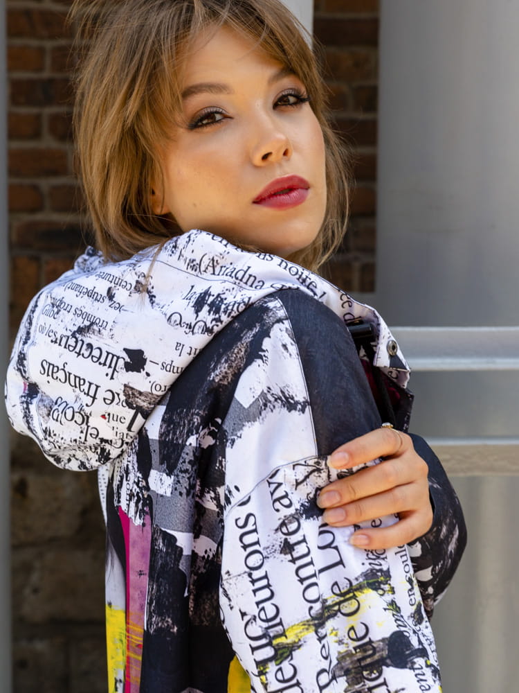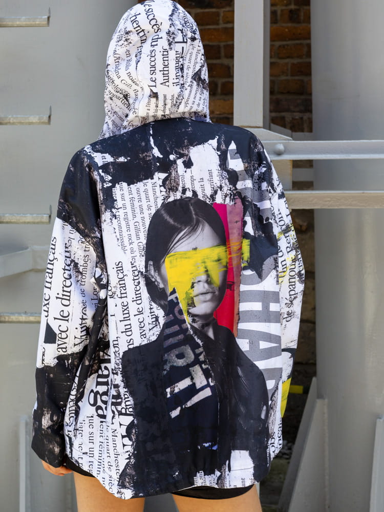 Krótka kurtka z kolażowym wzorem wykonanym dla naszej pracowni przez Anetę Kosowską. Oryginalny wzór stanowi doskonałe uzupełnienie dla prostego fasonu. Została wykończona wiskozową podszewką. Ta niebanalna kurtka wiosenna perfekcyjnie nadaje się na co dzień. Swobodny krój oraz obszerny kaptur zapewniają najwyższy stopień komfortu.