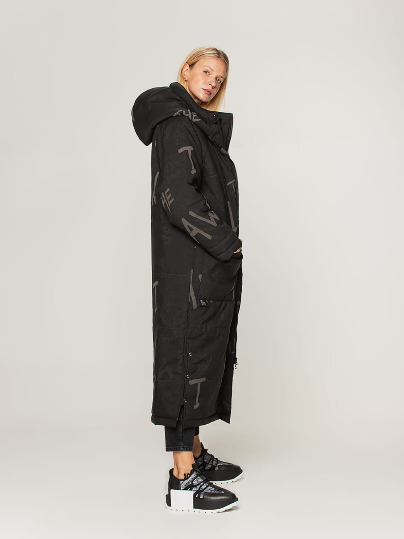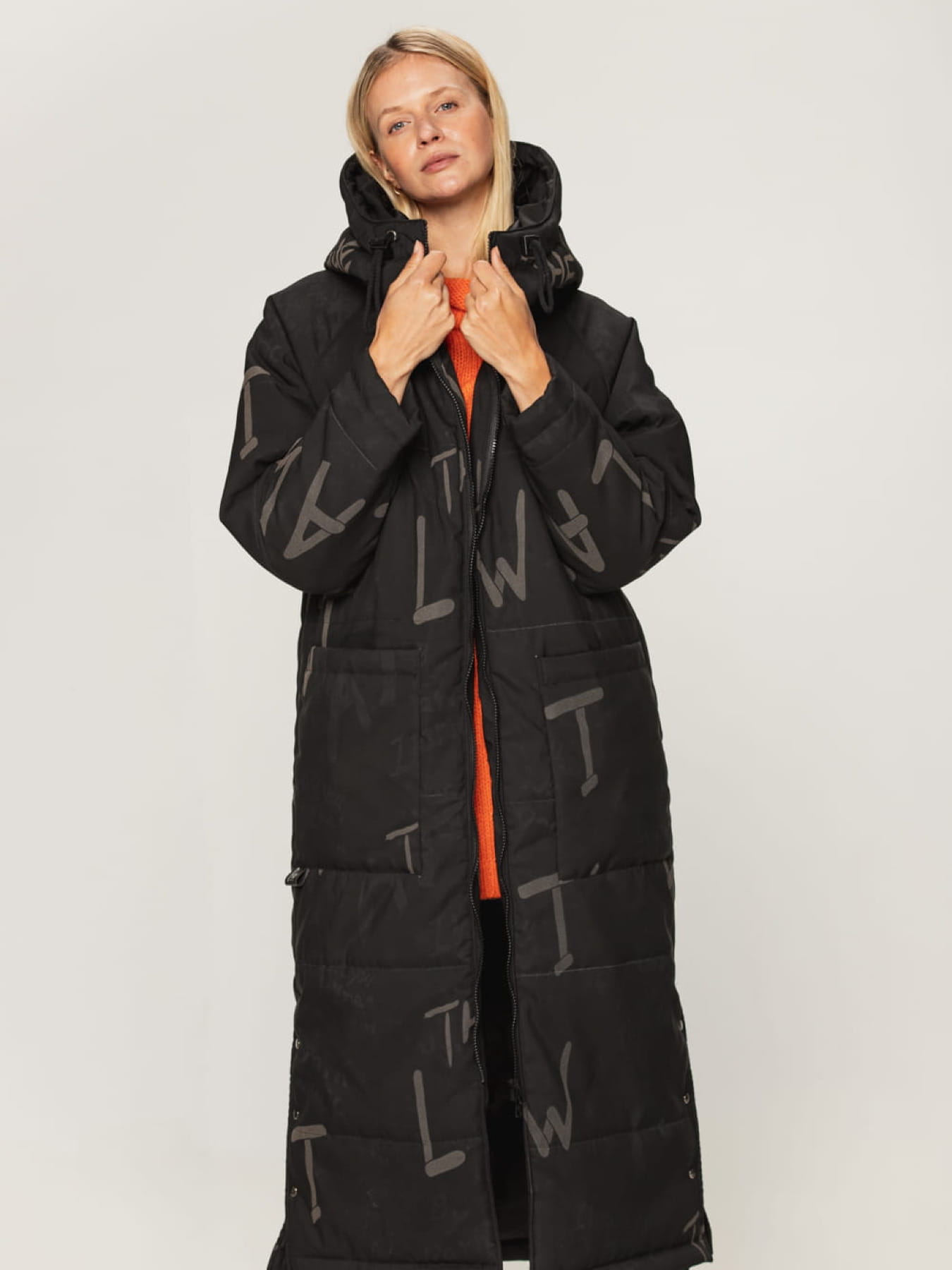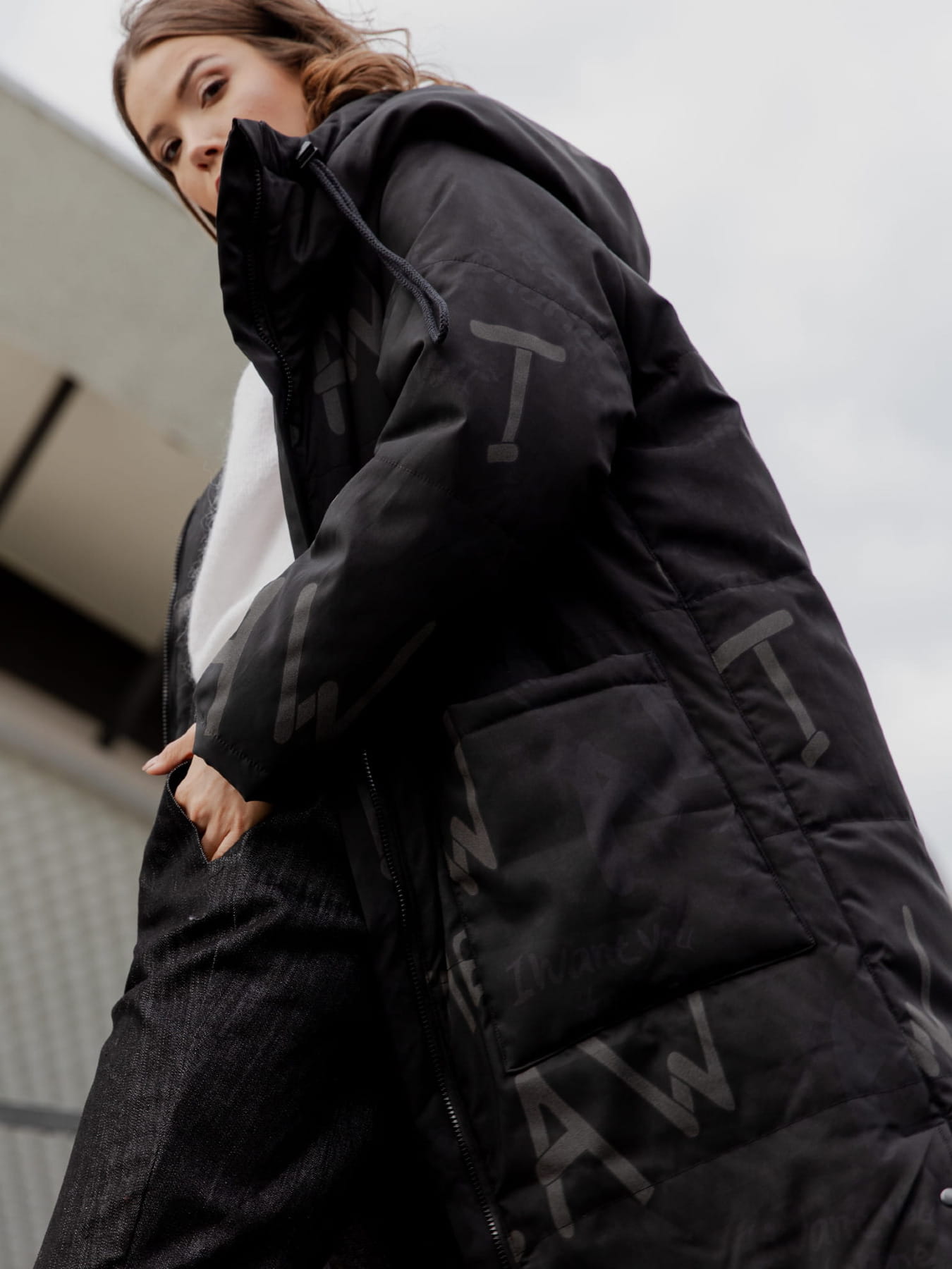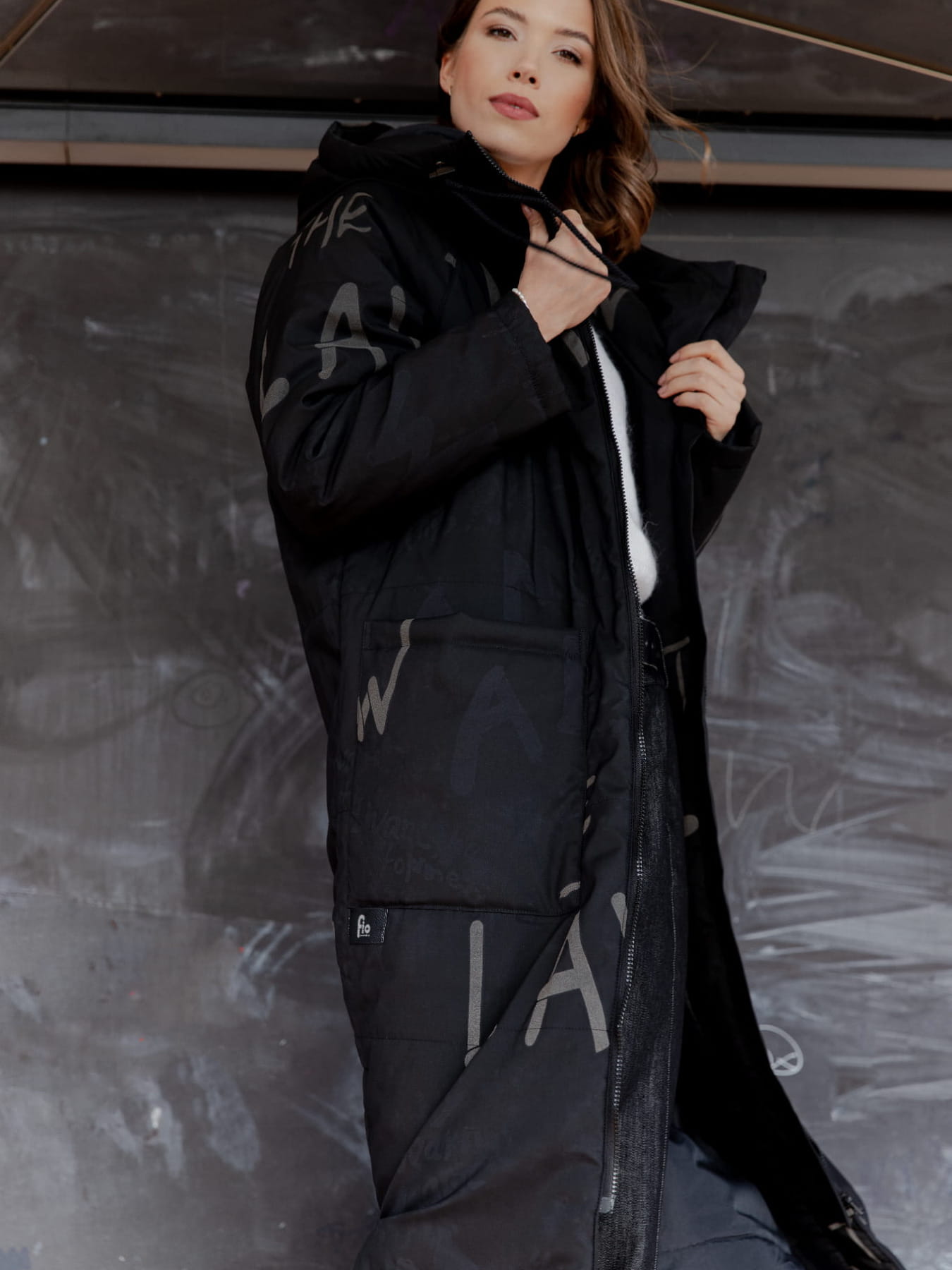Płaszcz zimowy long został wykonany z wodoodpornej tkaniny, która uchroni Cię przed deszczem oraz przed podmuchami wiatru. Wnętrze modelu jest ocieplane wysokiej jakości ocieplaczem silikonowym. Ponadto nasz płaszcz wyróżnia się dużym, zabudowanym kapturem. Model z dłuższym tyłem . Boki płaszcza zapinane na napy. Ponadto wzór ma nadrukowane litery,które świeca w ciemności i stanowia bardzo praktyczny element całości.