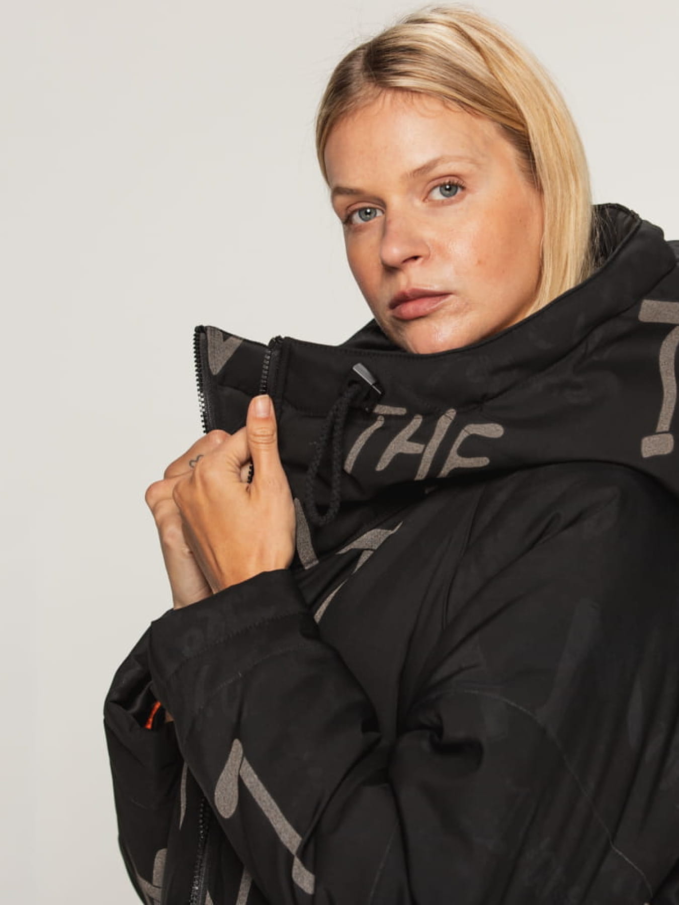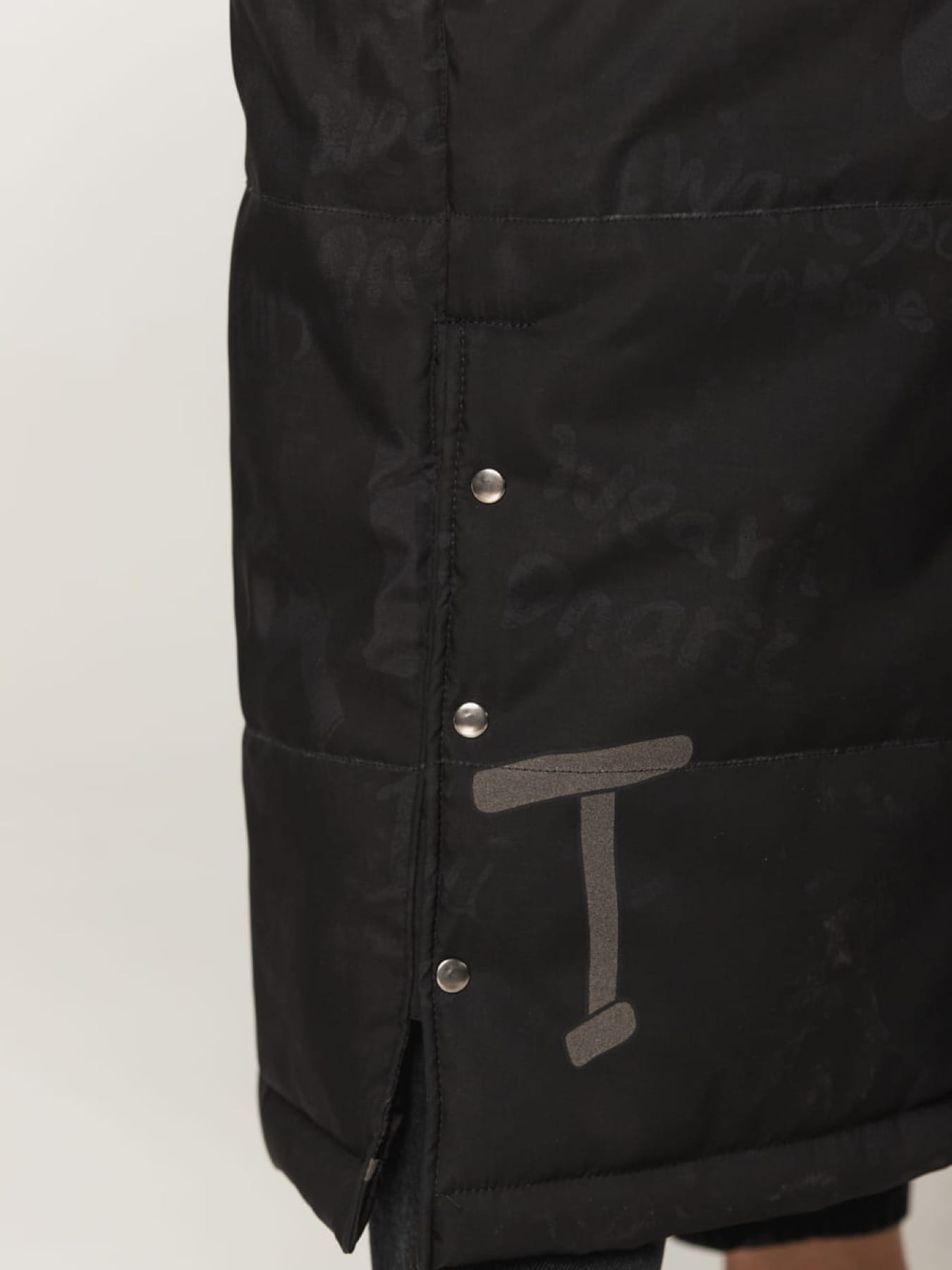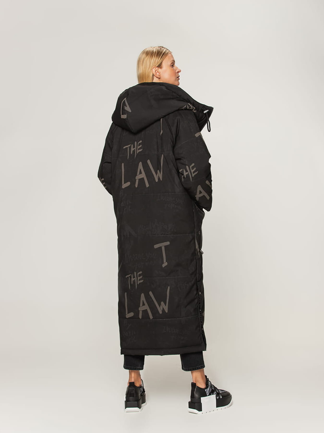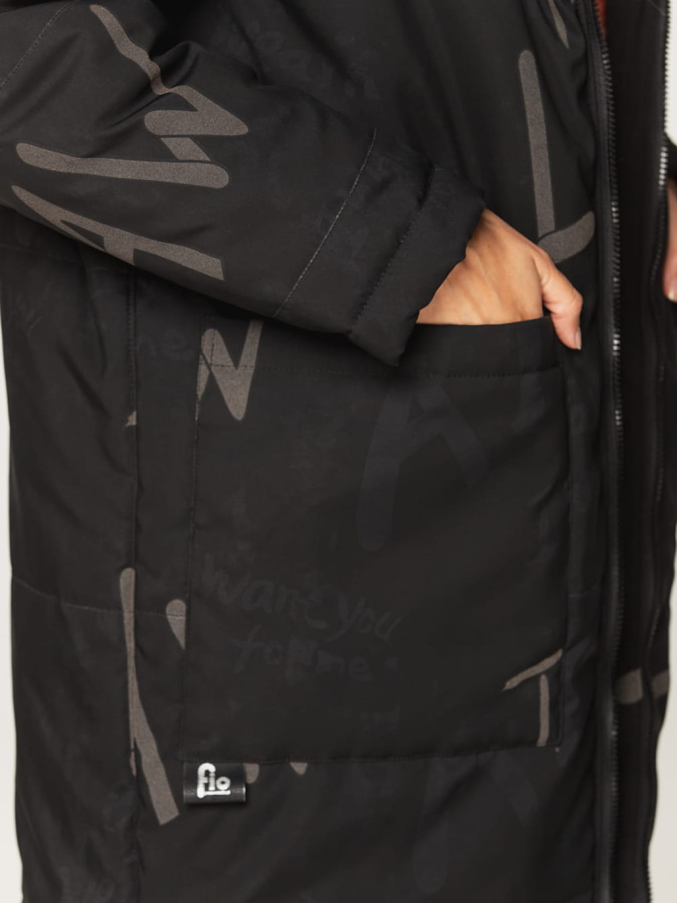 Płaszcz zimowy long został wykonany z wodoodpornej tkaniny, która uchroni Cię przed deszczem oraz przed podmuchami wiatru. Wnętrze modelu jest ocieplane wysokiej jakości ocieplaczem silikonowym. Ponadto nasz płaszcz wyróżnia się dużym, zabudowanym kapturem. Model z dłuższym tyłem . Boki płaszcza zapinane na napy. Ponadto wzór ma nadrukowane litery,które świeca w ciemności i stanowia bardzo praktyczny element całości.