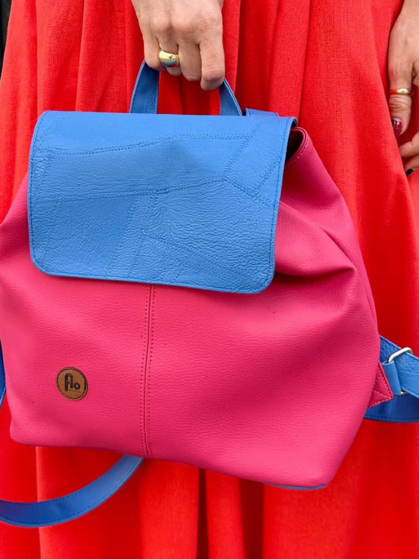 Plecak jest jednokomorowy, z dodatkową wewnętrzną kieszenią zapinaną na suwak, która pomieści najważniejsze drobiazgi. Dzięki regulowanym paskom można go idealnie dopasować do sylwetki i stylu noszenia. Klapa zamykana na magnes dodaje mu lekkości, a subtelne logo Fio z przodu podkreśla jego charakter.