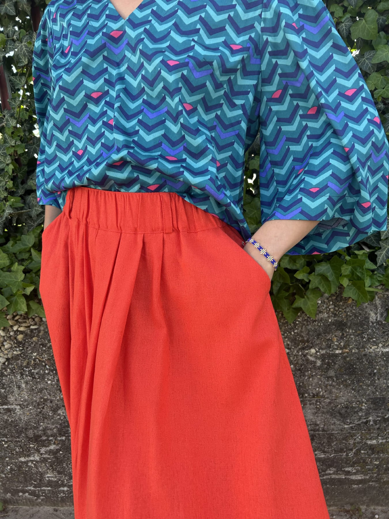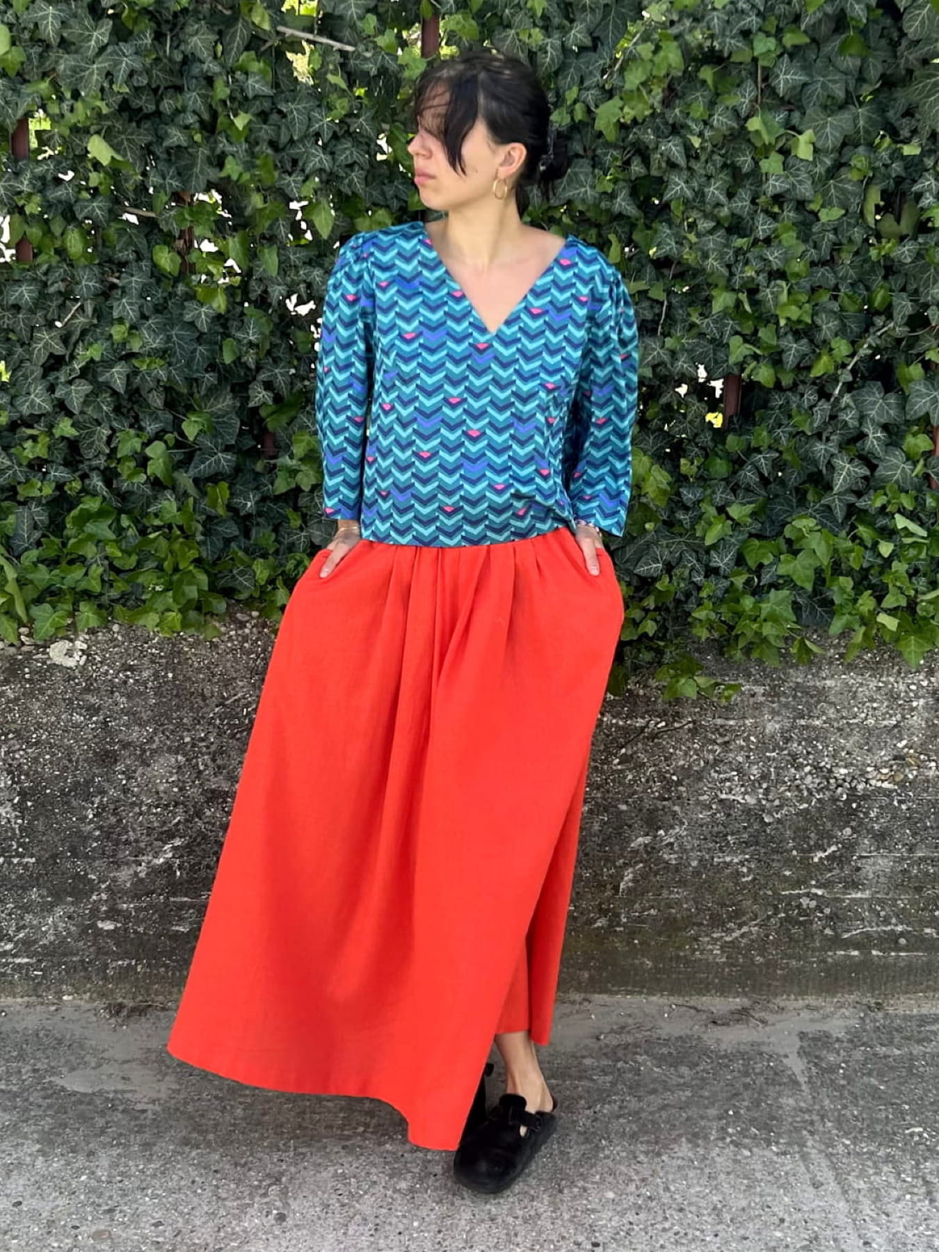Spódnica maxi z lnu i viskozy, z gumą w pasie, zakładkami i kieszeniami. Lekka, przewiewna i wygodna – idealna na lato!