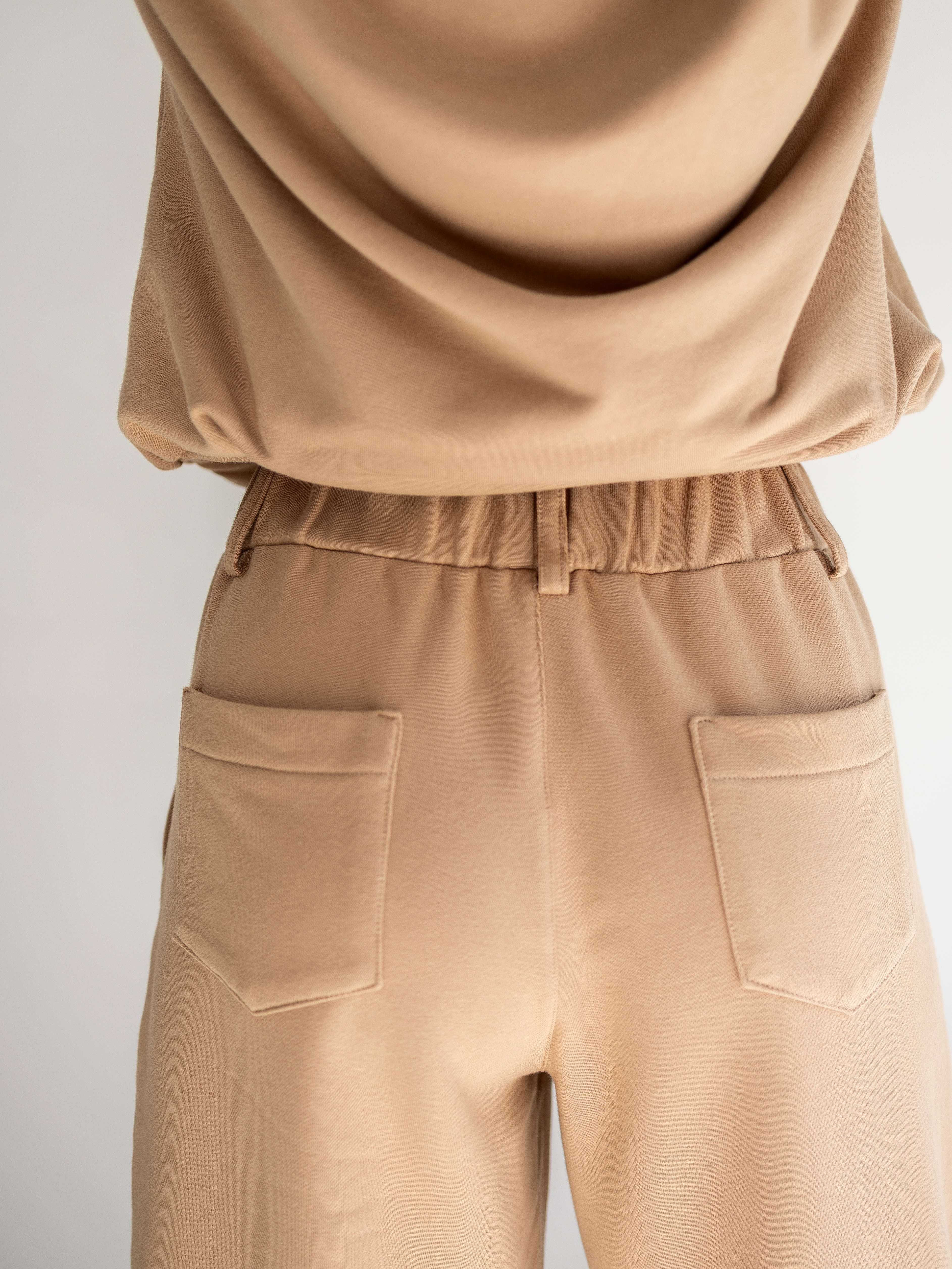 Luźniejsza forma nogawek nadaje spodniom charakterystyczny, modowy wygląd, a wyrazisty pomarańczowy odcień przyciąga uwagę i ożywia stylizację. Fason łączy swobodę z nowoczesną linią, dzięki czemu model świetnie sprawdza się zarówno w codziennych zestawach, jak i w komplecie z bluzą Fiorella.